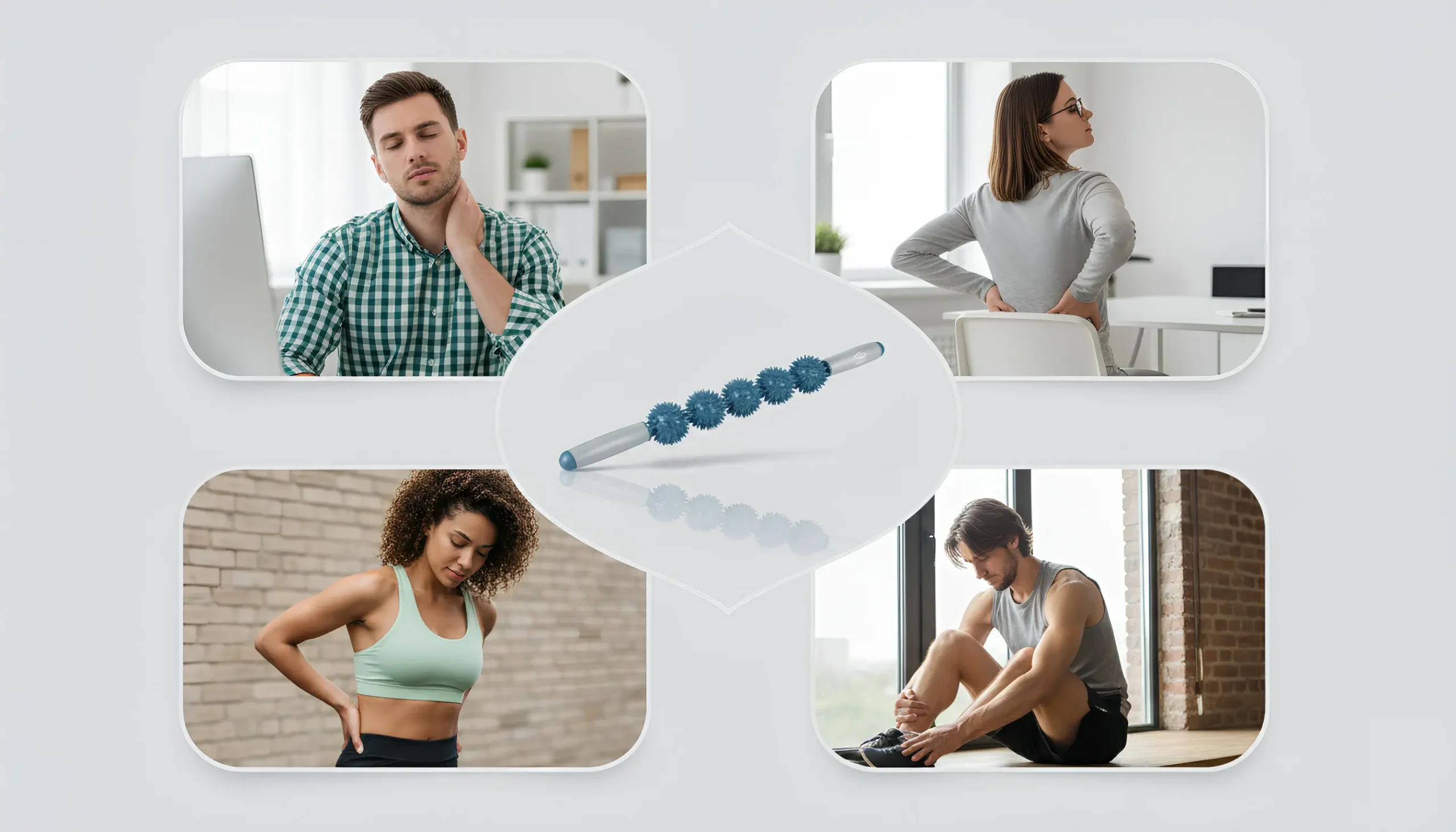 A tüskés labdák finoman követik a test vonalait, így könnyedén elérhetők a feszültségre hajlamos területek. A gördülő mozdulatok segítenek ellazítani a megfeszült izmokat, miközben visszaadják a test természetes könnyedségét.