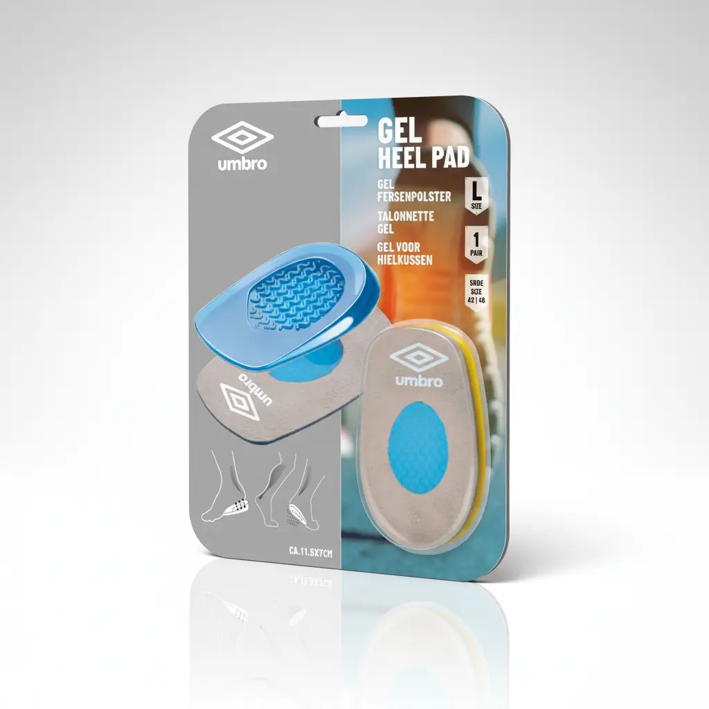 A valódi kényelem a részletekben rejlik! Az Umbro sarokemelő talpbetét réteges struktúrája egyenletesen oszlatja el a nyomást, miközben a puha, rugalmas gél tompítja a lépések erejét. A precízen formált kúpos sarokrész stabilan tart, a velúrborítás pedig száraz, kellemes tapintást biztosít. Ergonomikus kialakítása révén tökéletesen illeszkedik a sarok és a lábbeli ívéhez egyaránt. Tartós anyagának köszönhetően hosszú távon is megőrzi formáját, így több alkalommal is használható.